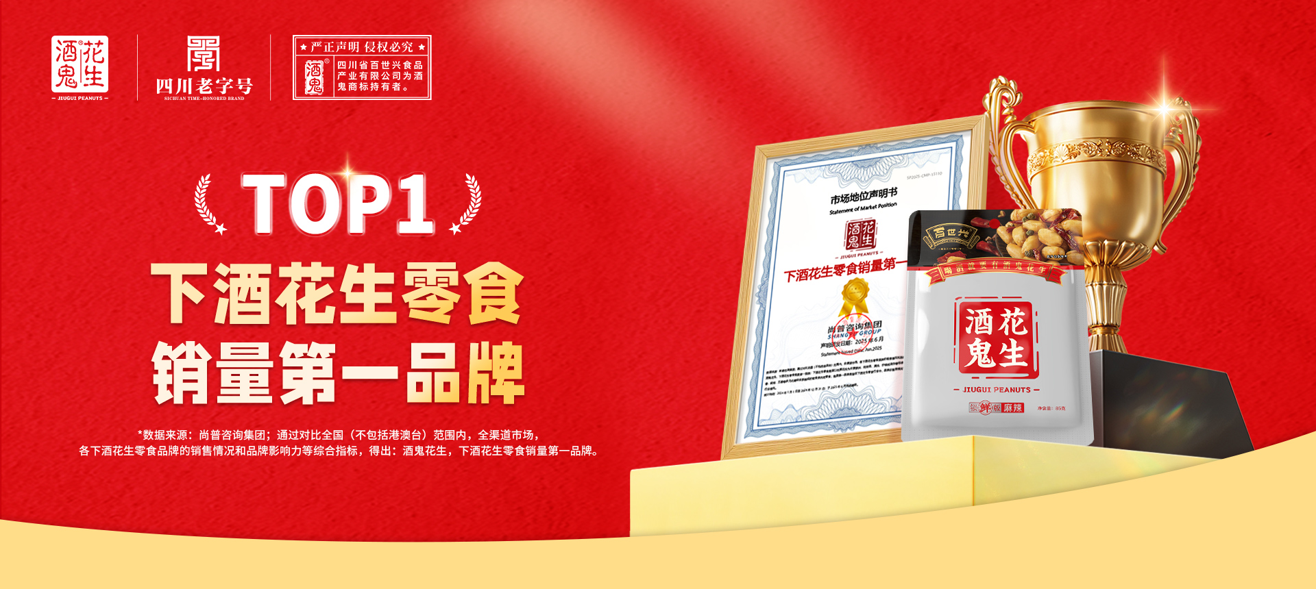 酒鬼花生是四川百世興食品有限公司創立的品牌,總部設立于四川成都,是一家集研發、生產、銷售為一體的花生休閑食品企業。榮獲“農業產業化省級重點龍頭企業”“非物質文化遺產”“四川老字號”等權威認證,經過二十余年的辛勤耕耘與不懈努力,已成長為中國花生食品行業的領導品牌。